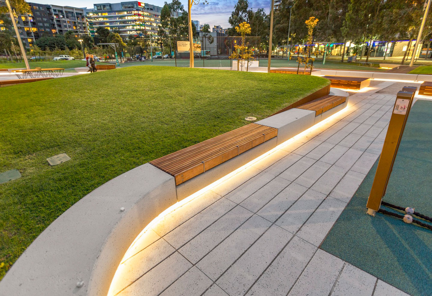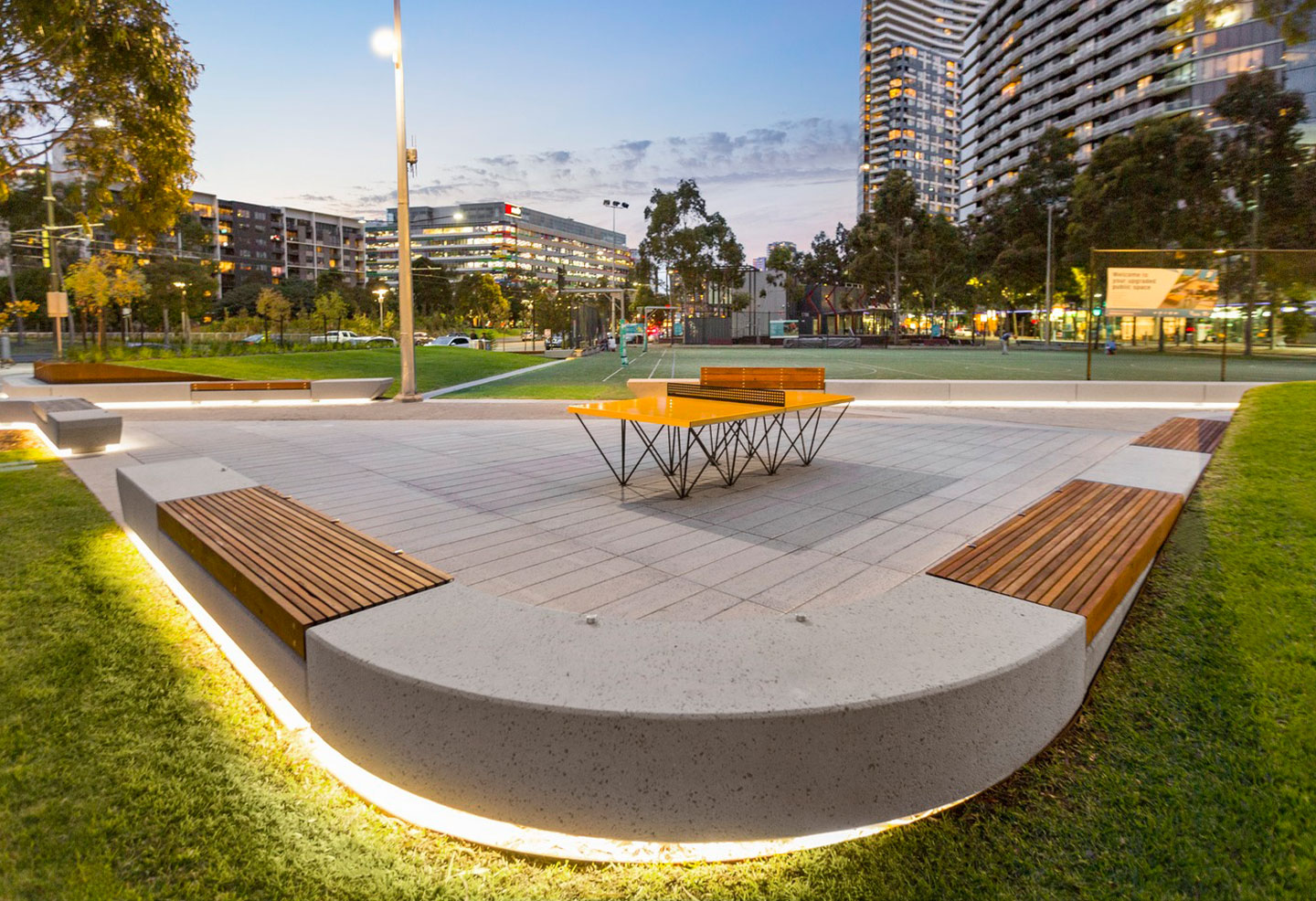 Stage 2 of the Docklands Park redevelopment incorporated the introduction of a multi-purpose sports court featuring exercise stations, ping pong tables, daybeds and seating. Anston (then SVC Urban) supplied various concrete seat modules that meander throughout the new space, similar to those provided during Stage 1 of the upgrade.