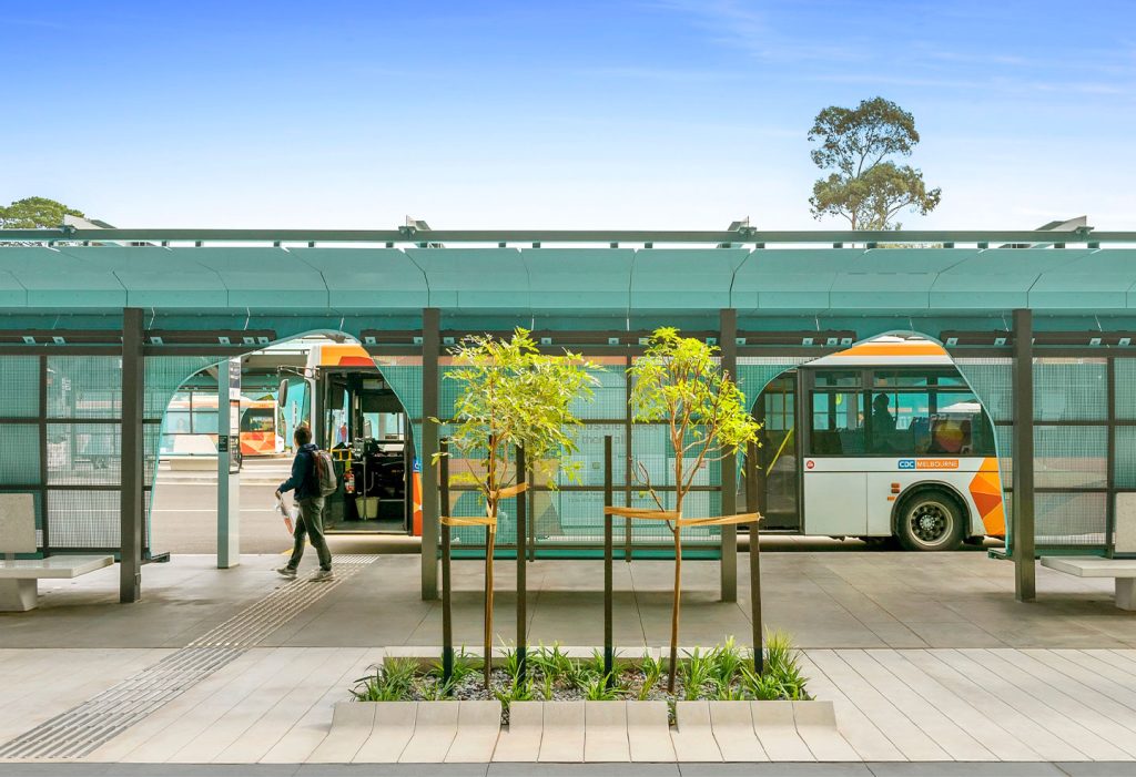 The new Transport Interchange at Monash University’s Clayton campus brings a contemporary new look to the entrance of the university. The project successfully integrates bus, cyclist and pedestrian services within well-marked spaces. Located between the interchange and the new Learning & Teaching building are custom paving slabs by Anston (then SVC Urban) that form a
