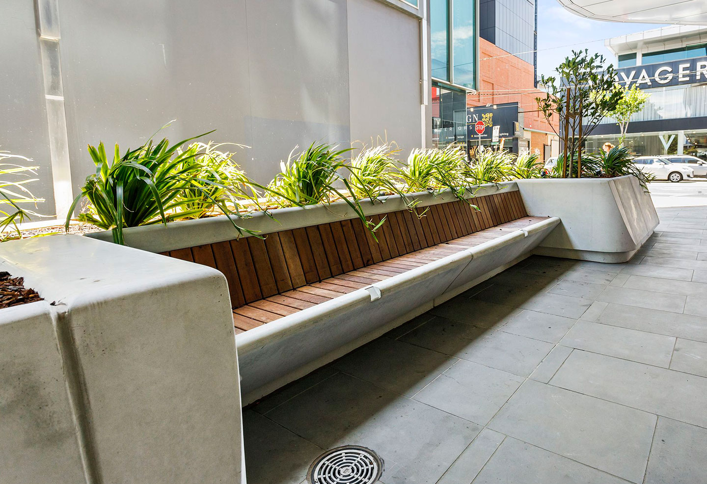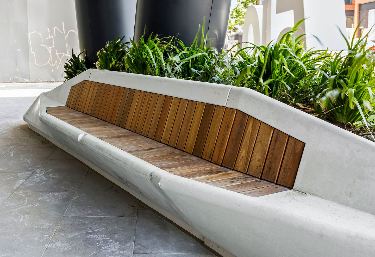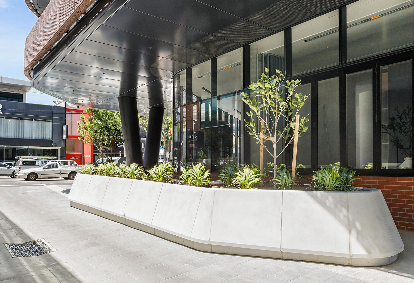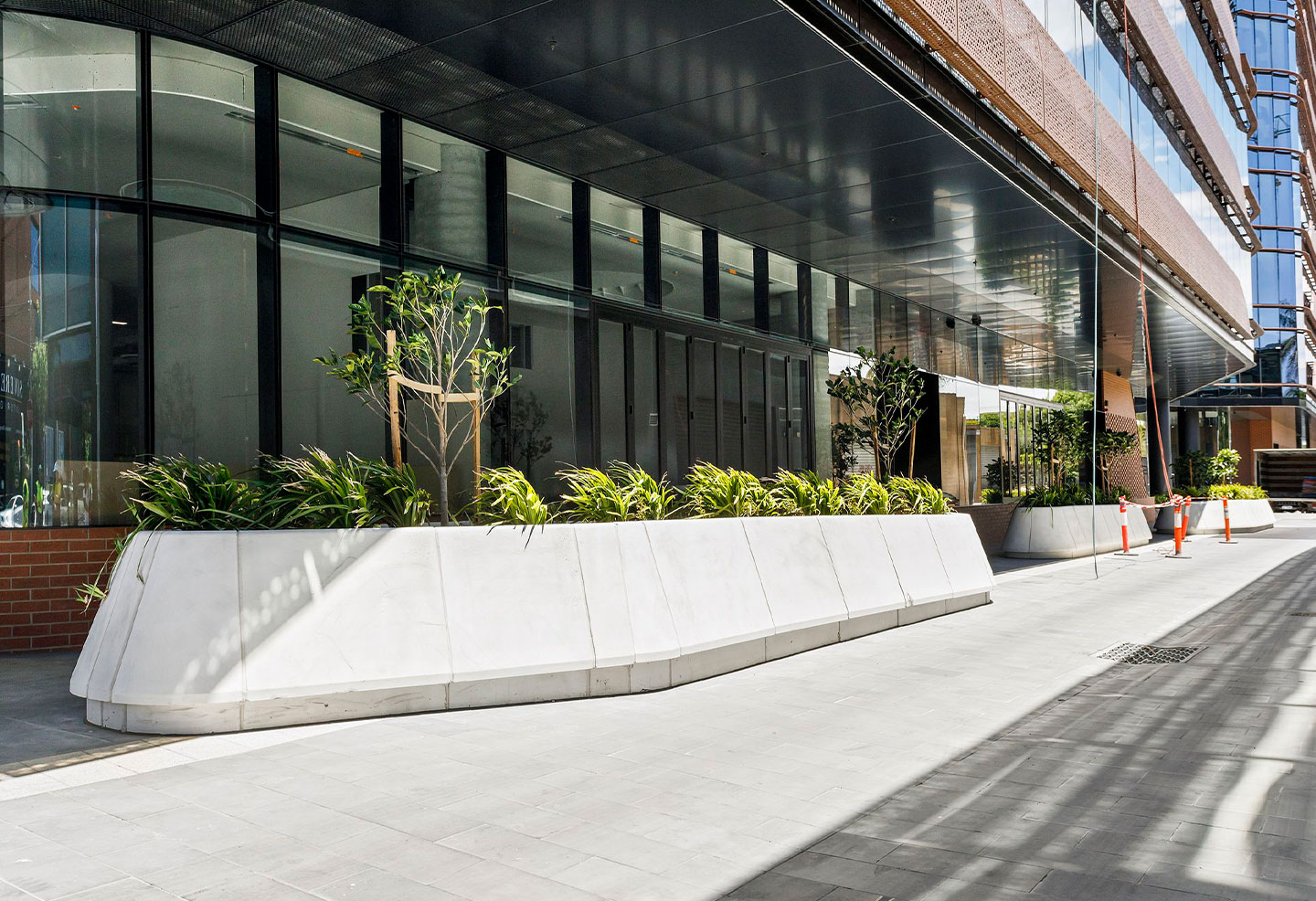 Anston (then SVC Urban) was contracted for the supply of bespoke precast concrete elements for the installation of the ground level planters and seats bordering the new building. The curved modules proved challenging for moulding and casting due to certain tight areas that required more precision and focus. However, the final modules were satisfactorily completed and the resulting streetscape is beautifully furnished with these concrete elements playing a key part.
