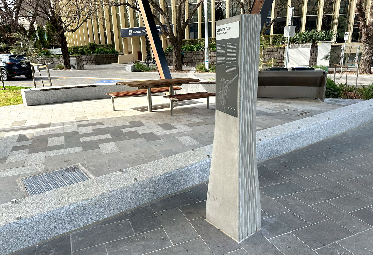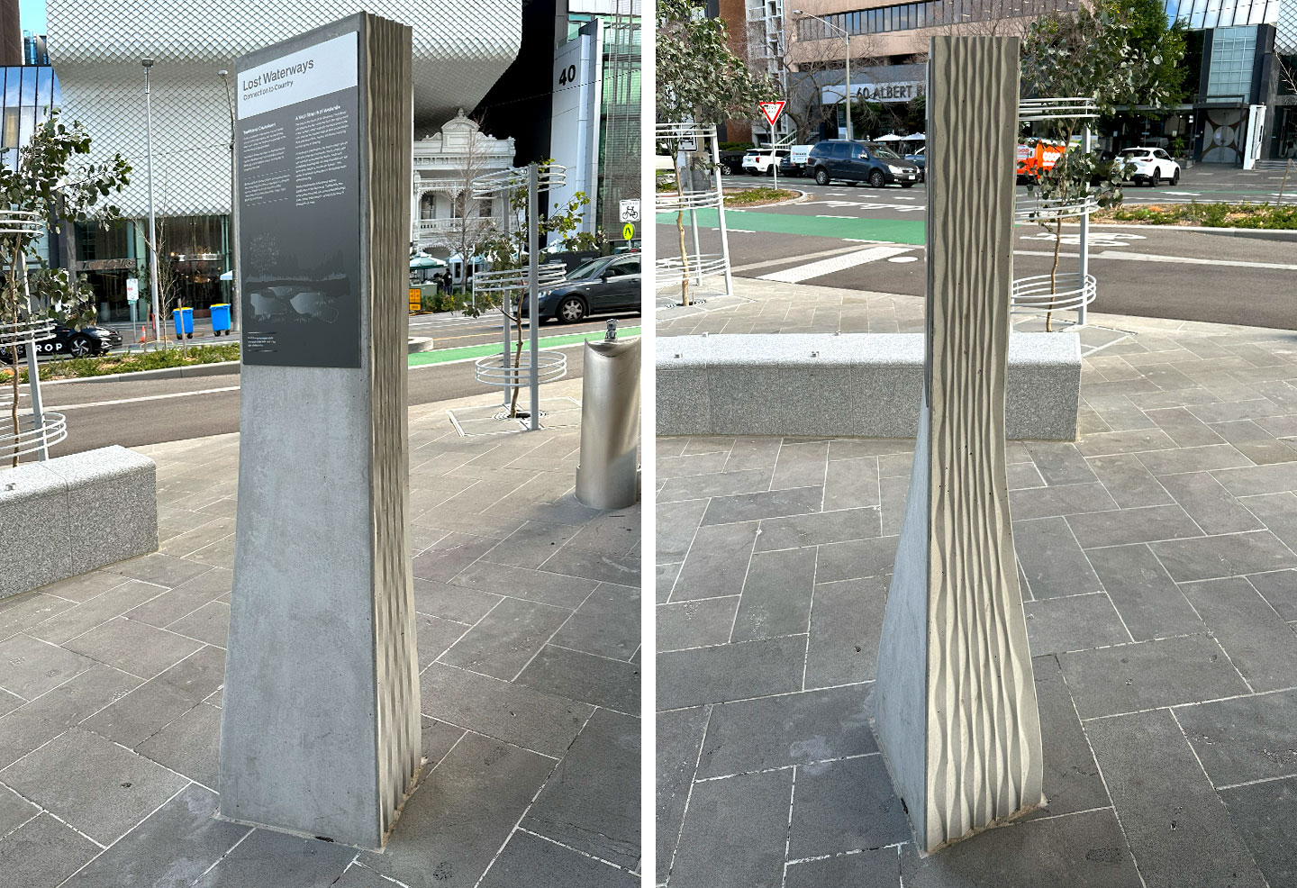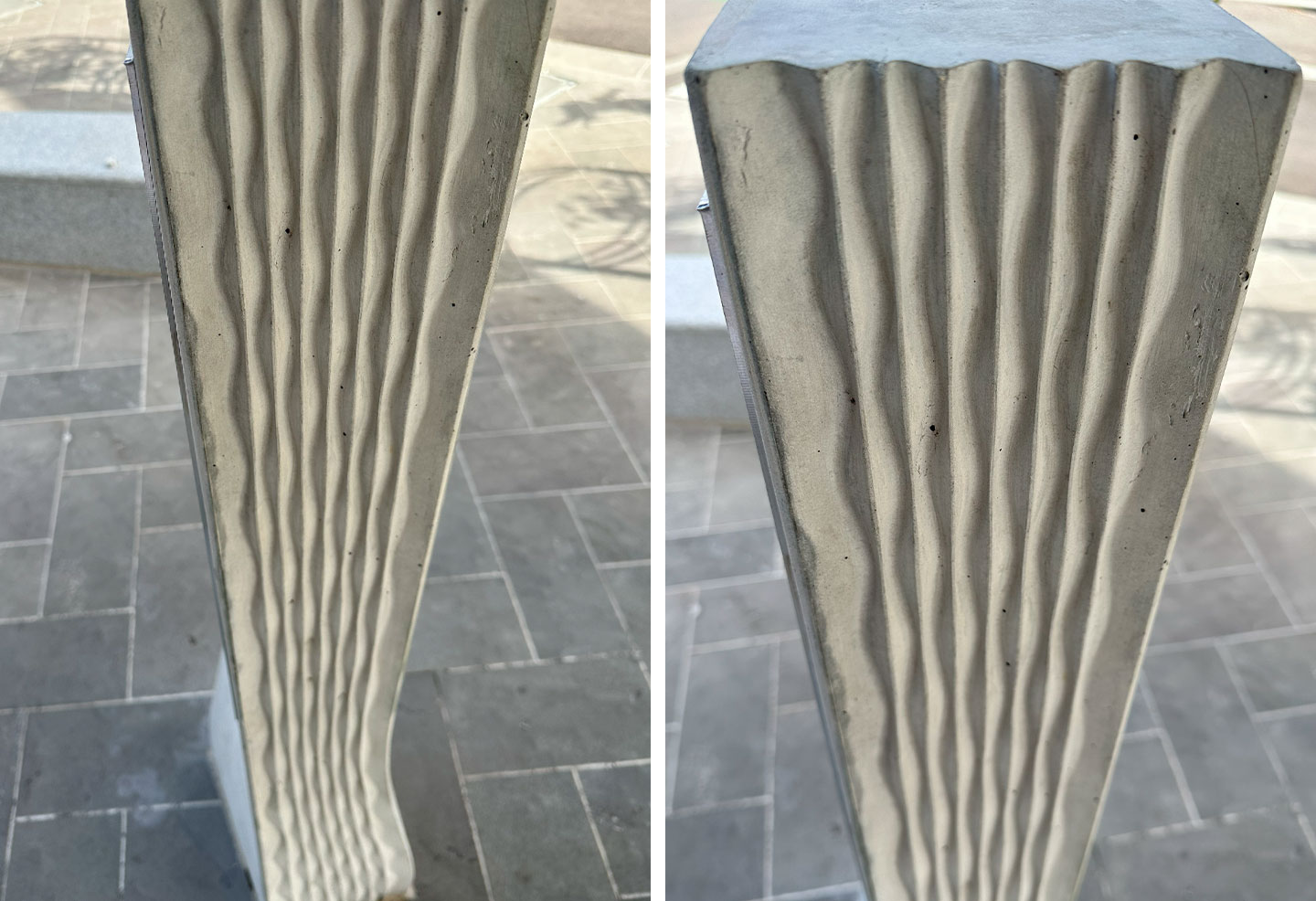 To complement that design language, Anston was engaged to create two custom concrete totem signs for the station precinct. Standing at 1.5m high, the two sign bases are impressive twisting sculptures with a custom wave pattern carved into the edges. The flowing detail creates a sense of movement and rhythm that feels at home in the station’s landscaped forecourt, while also helping to anchor the station’s signage in a visually interesting and tactile way.