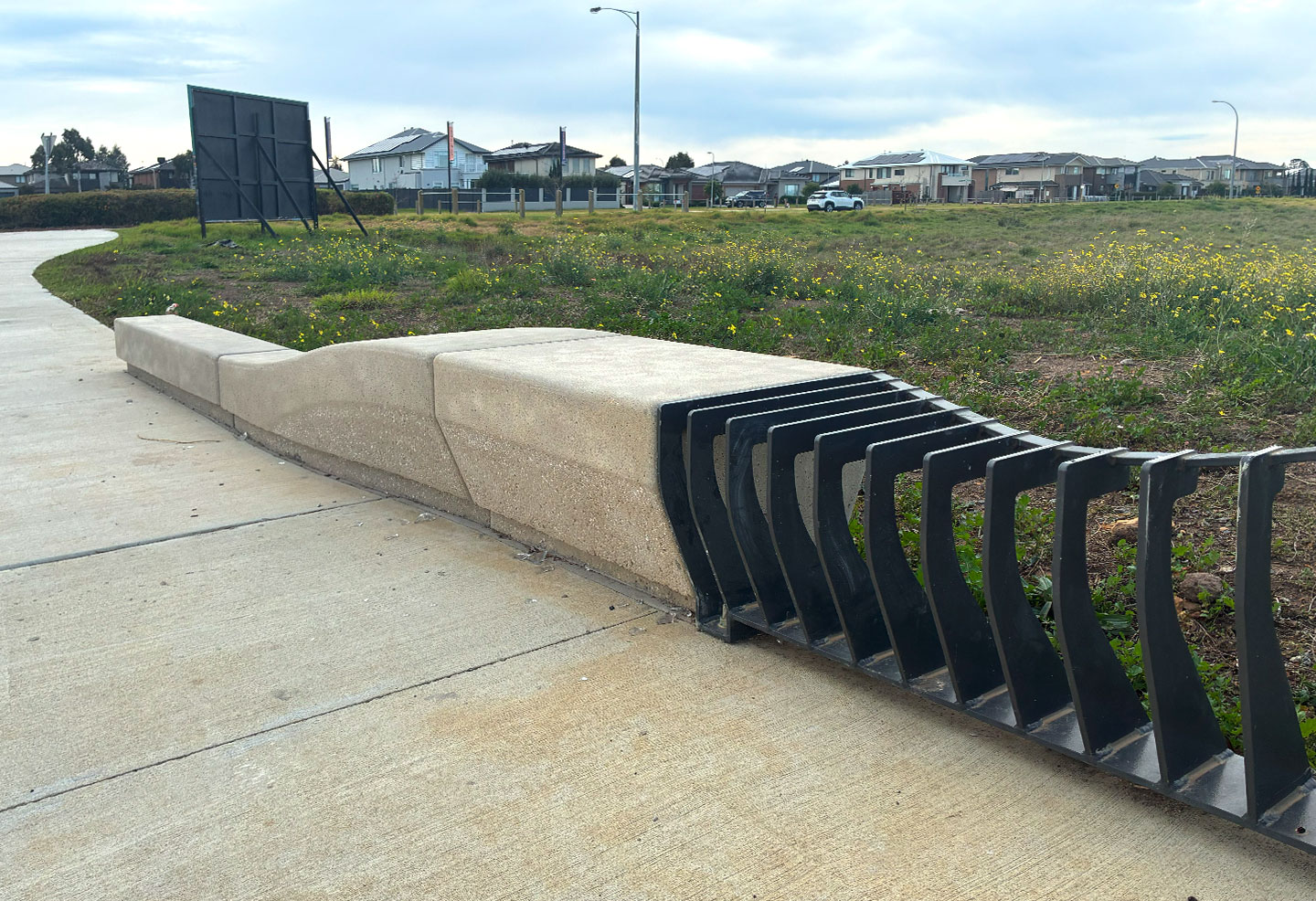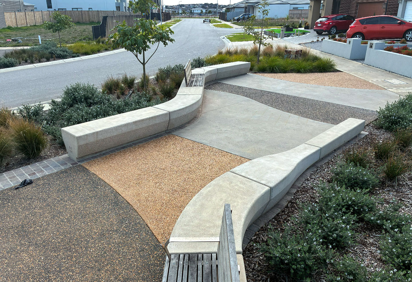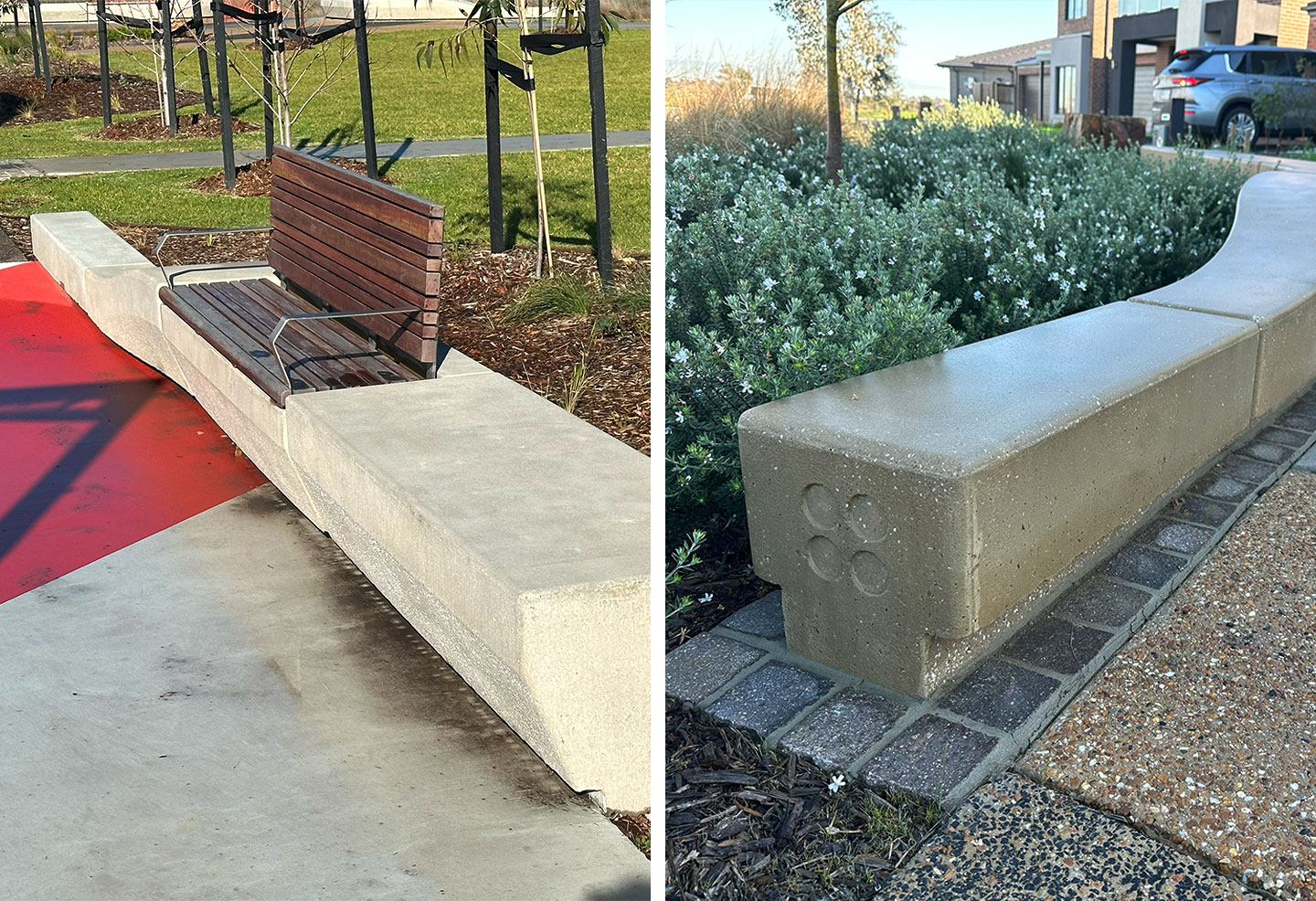 Designed by Tract, a key aspect of the Berwick Waters community is to promote outdoor activity for residents of all ages. Modern outdoor playspaces and 9km of shared bike paths and scenic walking trails weave through the estate, furnished with over 100 custom concrete seating modules that provide areas for rest while contributing to the overall aesthetic value of the landscape.