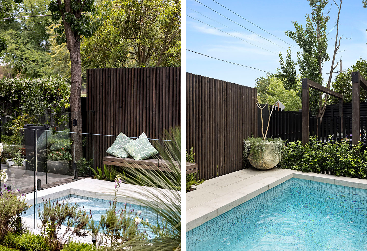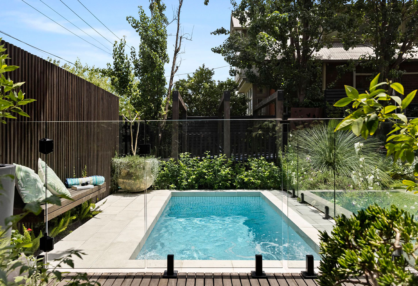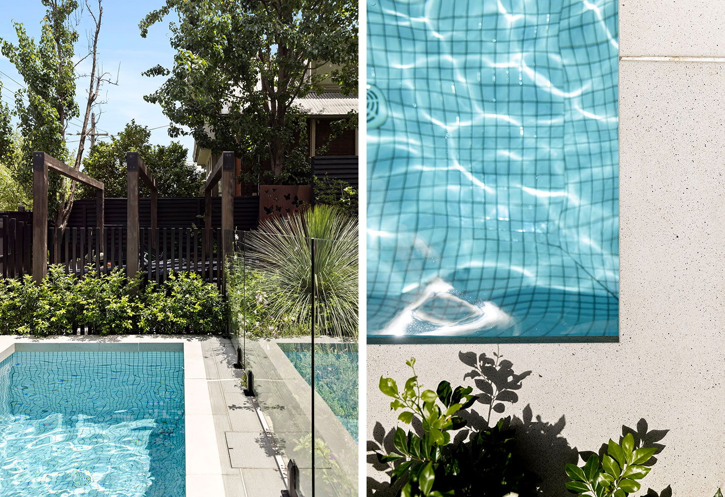 Dropdown pool coping provides a stylish, durable edging solution at a beautiful private residence in inner Melbourne.