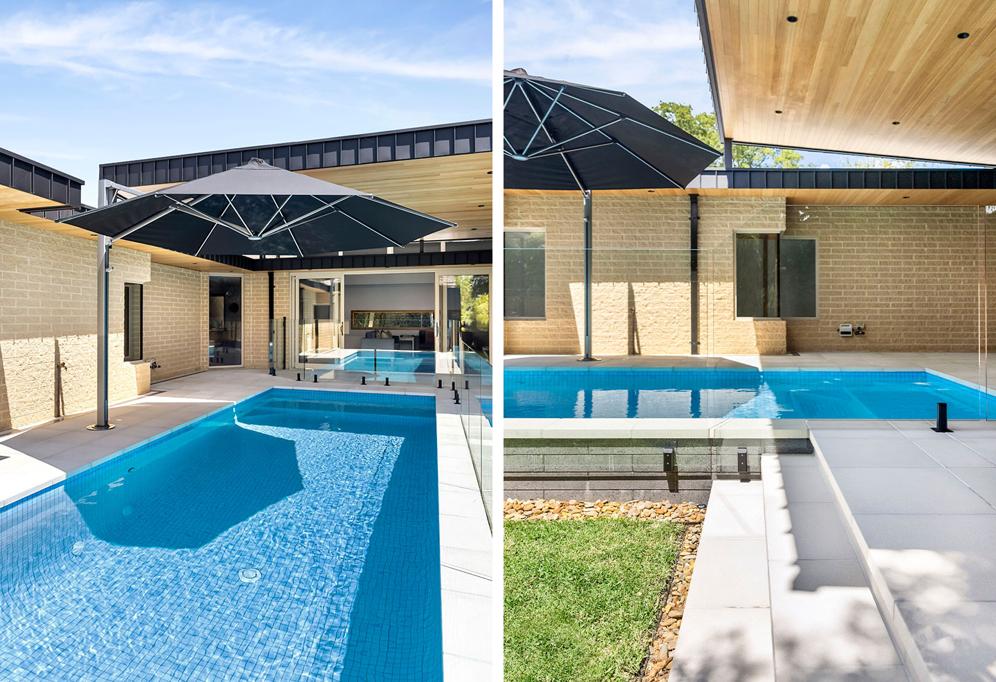 Set in the Melbourne suburb of Glen Iris, this striking private pool exemplifies clean lines, natural textures, and a cohesive material palette.