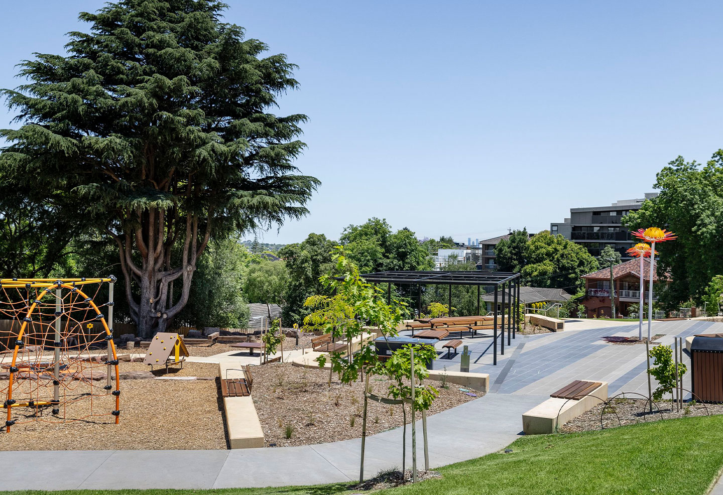 Following a consultative process to define the current and future community needs for the new park, construction commenced in September 2023. Works were completed by August 2024 and the park’s grand opening was celebrated with a festive community day of family-friendly activities.