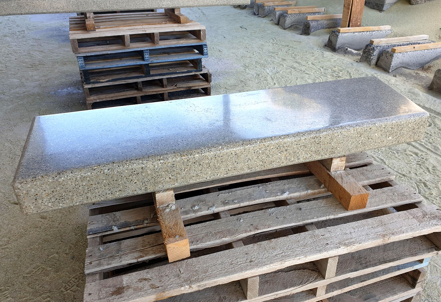 The landscape design of the streetscape upgrade was completed by Outlines Landscape Architecture, with Evergreen Civil carrying out the construction. Anston (then SVC Urban) was contracted for the supply of smoothly polished, exposed aggregate concrete slabs, used as cantilevering bases to hold timber and steel slatted seat modules.