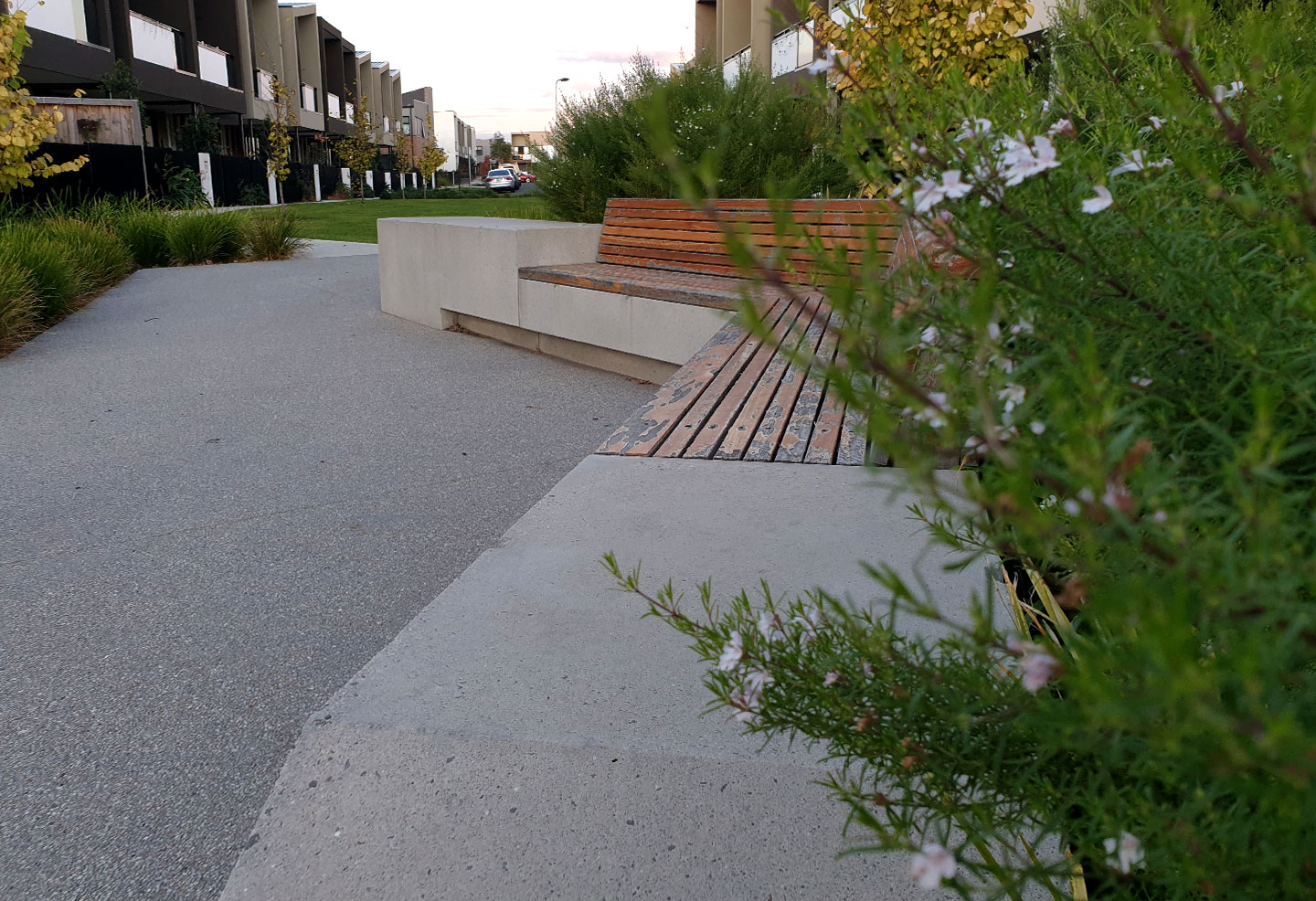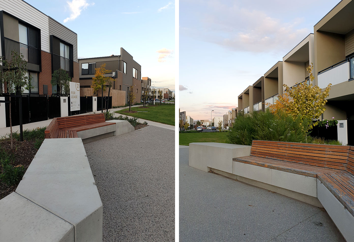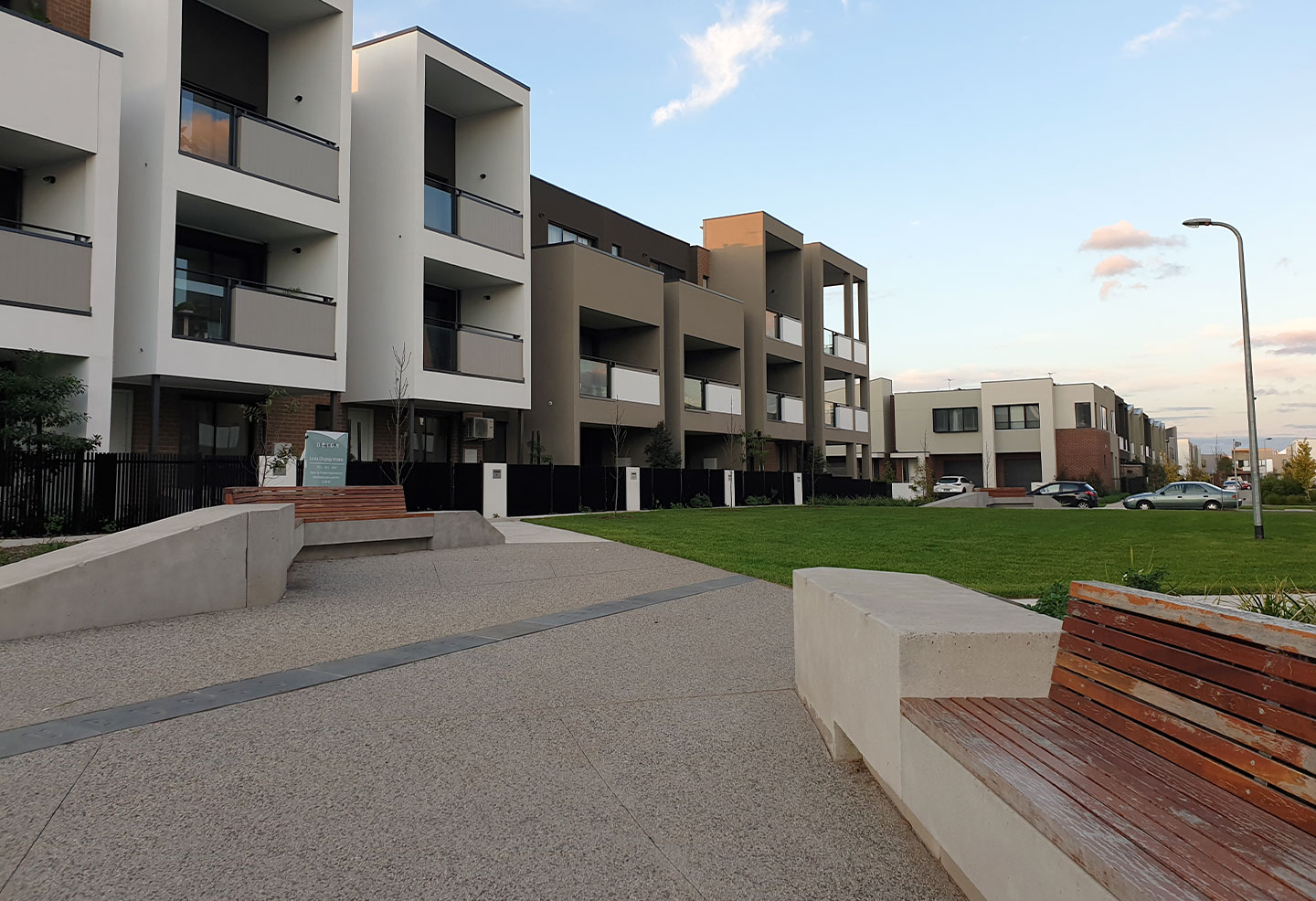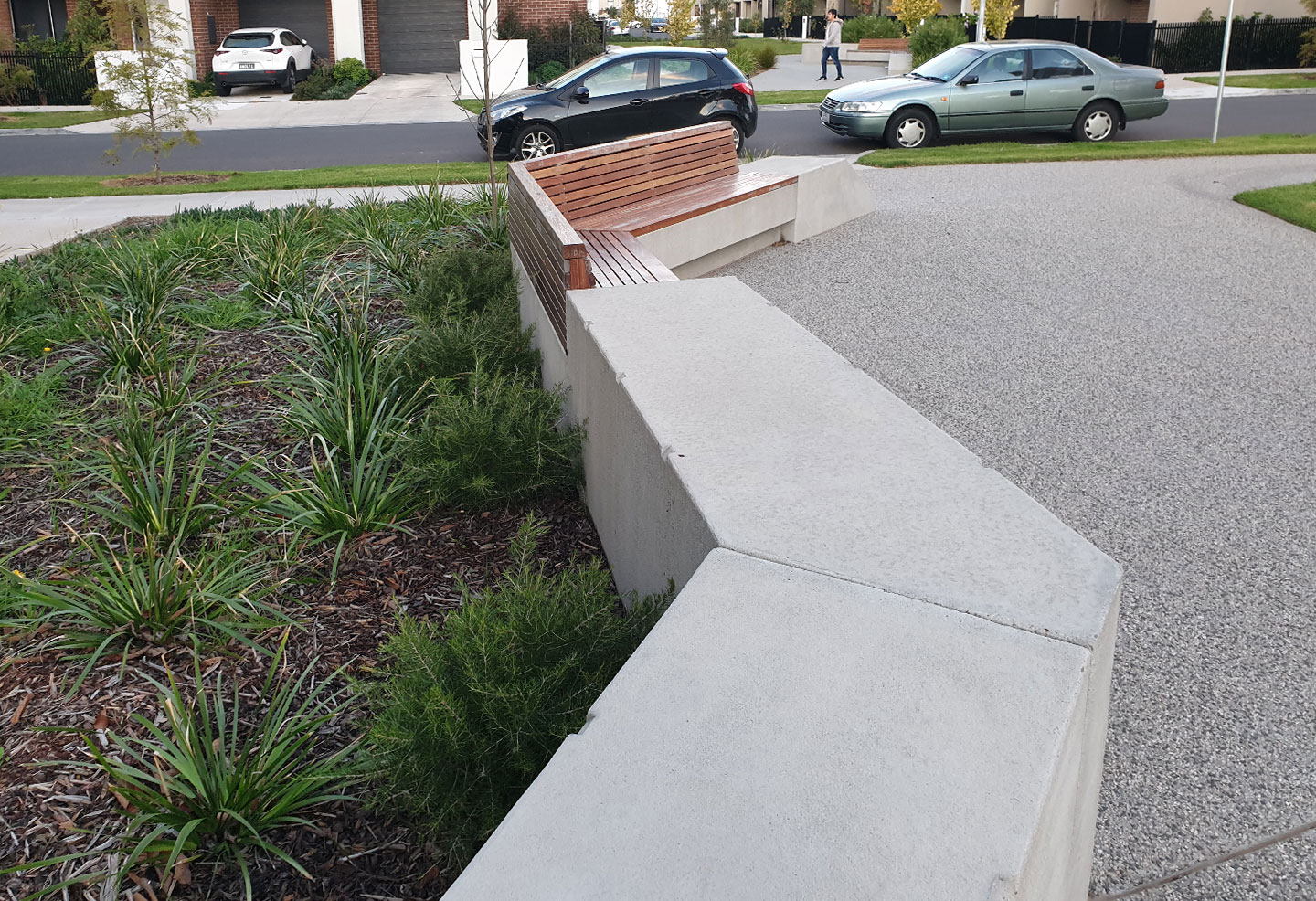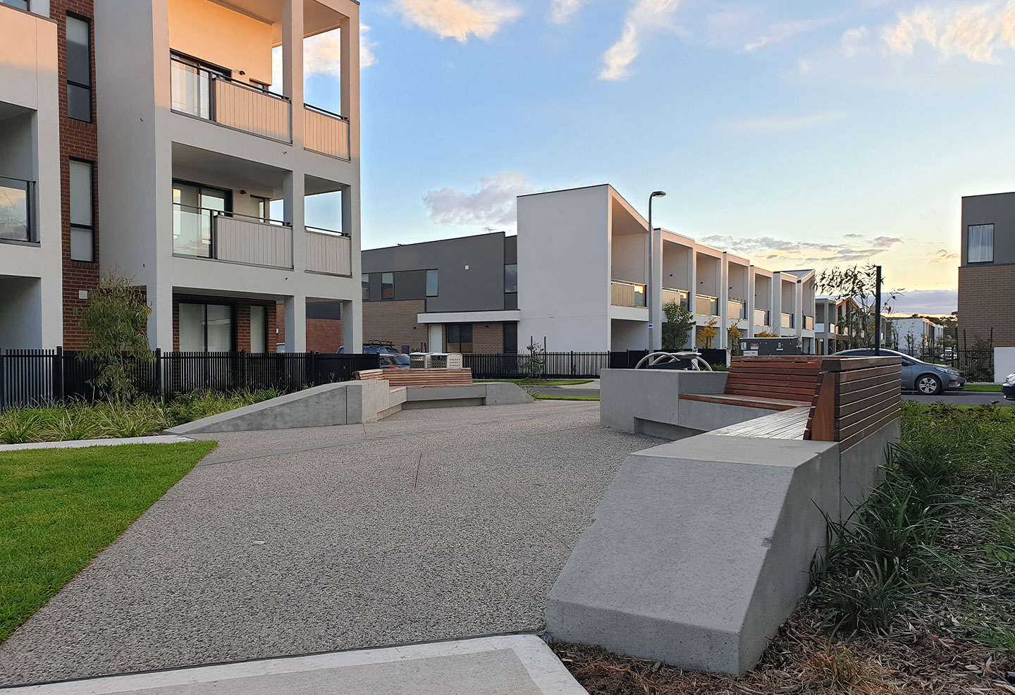 Anston (then SVC Urban) was contracted to supply bespoke concrete seat modules to furnish the outdoor landscape at Orion, completing staged deliveries over a three-year period to align with the construction schedule. The seat modules were custom-made to fit the specific requirements of the space, manufactured with rebates to allow for timber seat inserts to be added during installation. The bespoke bench seats complement the contemporary design of the townhomes, integrating seamlessly with the surrounding landscape and architecture.