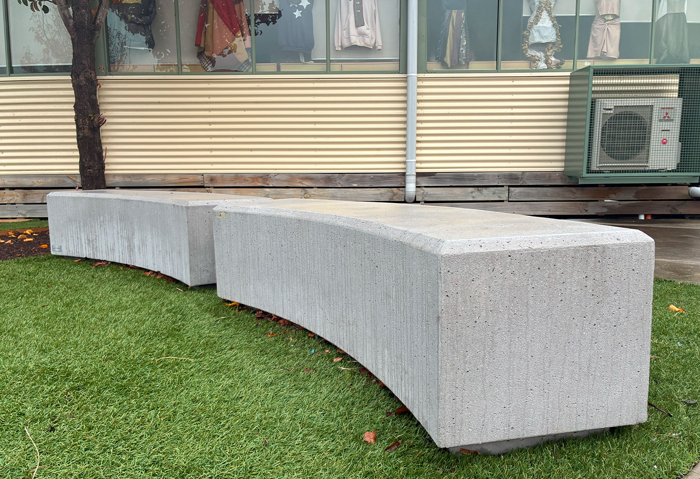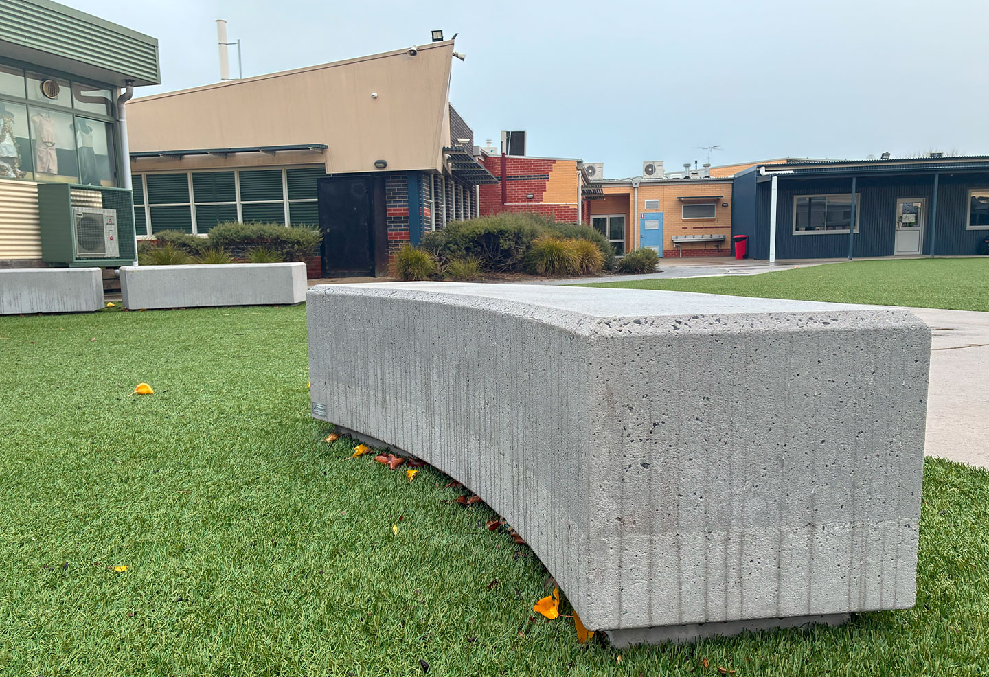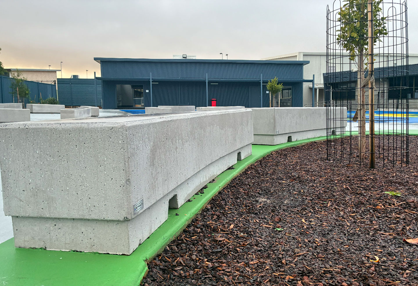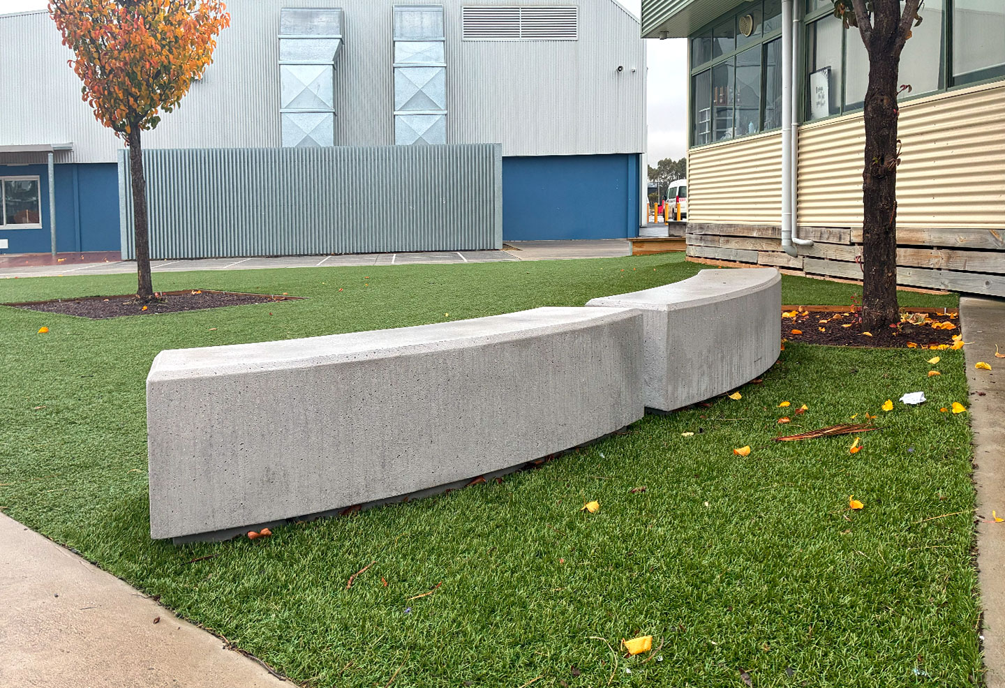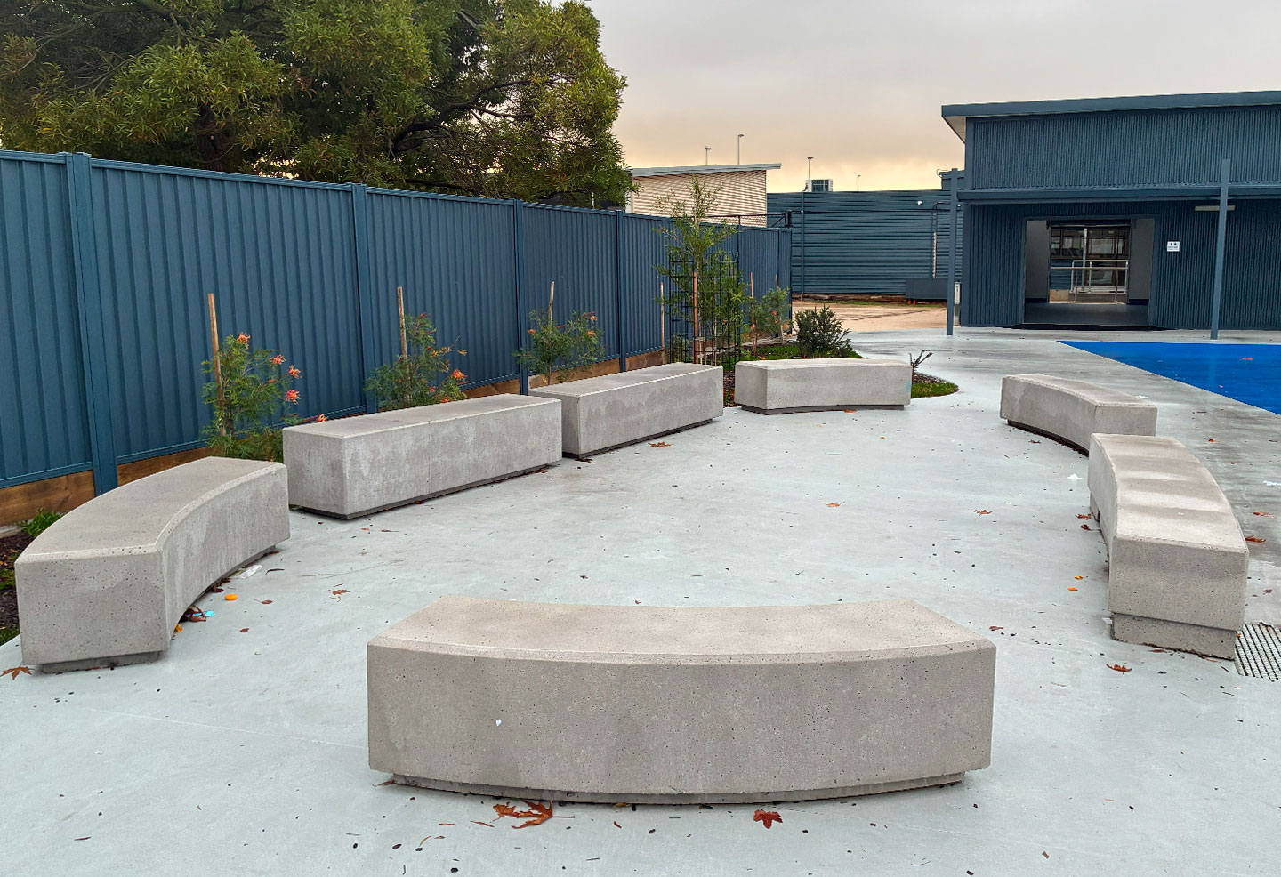 The concrete furniture was supplied by Anston using a variety of catalogue bench seats, a design-ready solution that enabled quick production and delivery without any compromise to product quality or finish. The inclusion of Anston Block, Wave, Cove and Marsh bench seats in the new courtyard promotes inclusivity and social interaction among the student cohort, encouraging conversations with ‘campfire-esque’ seating configurations.