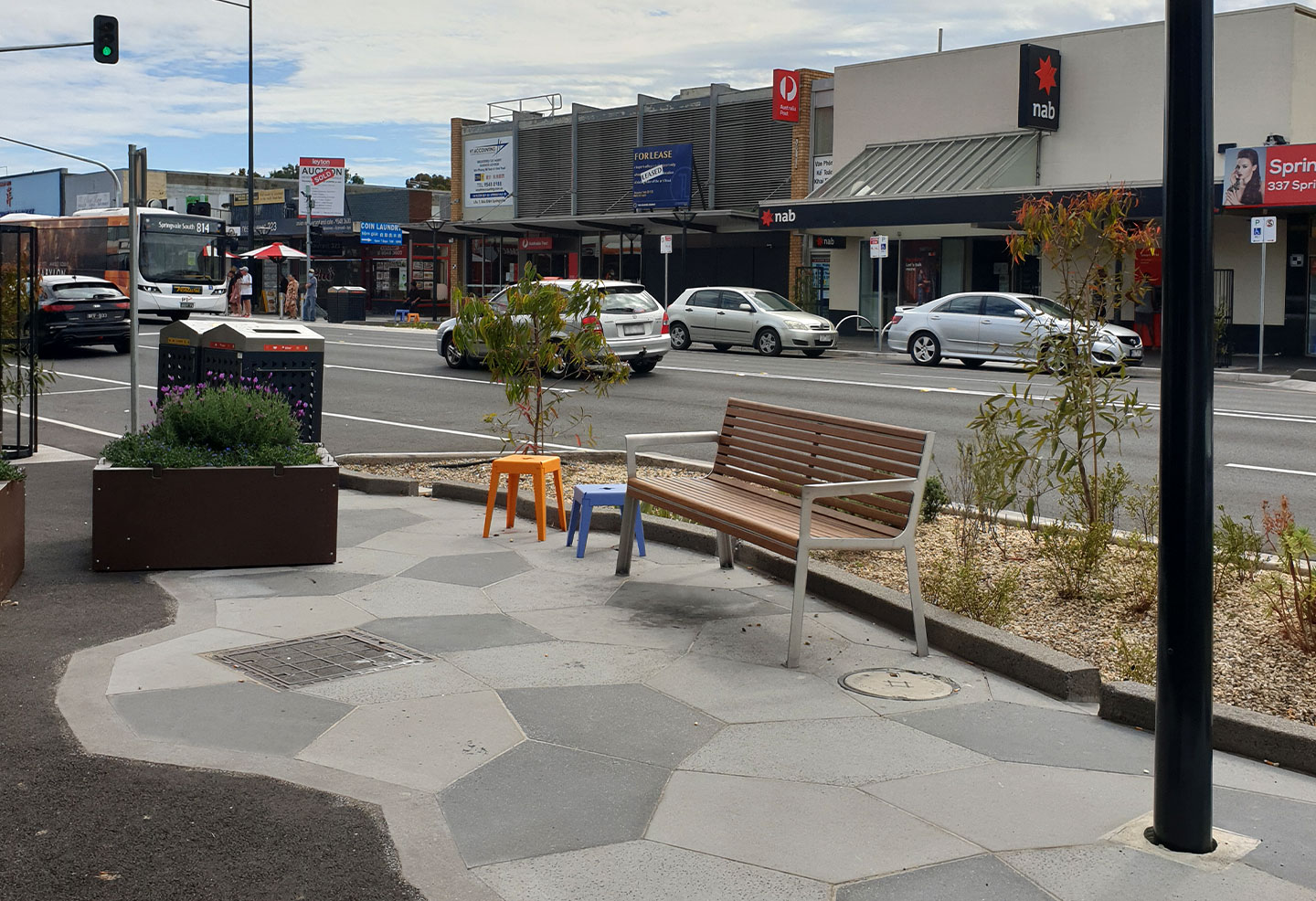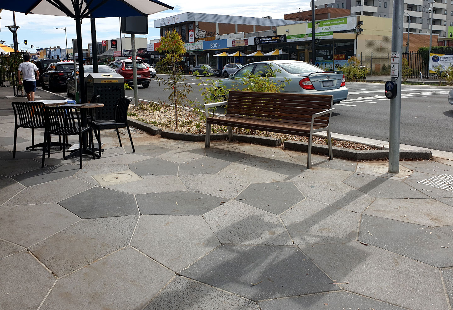 The Springvale Boulevard upgrade was part of the broader Revitalising Springvale project by the Greater Dandenong City Council. The tri-coloured pentagonal pavers, now seamlessly integrated into the landscape, offer a unique and eye-catching visual that is now a distinctive feature of Springvale’s central axis.