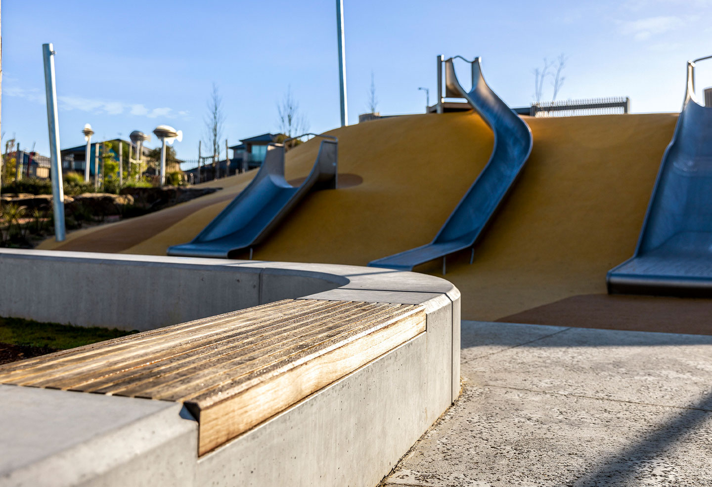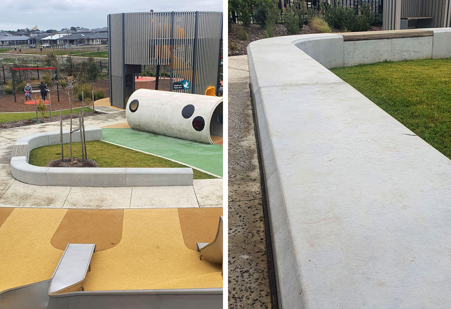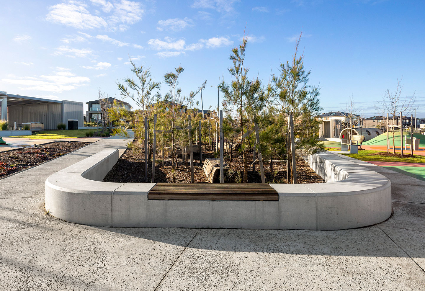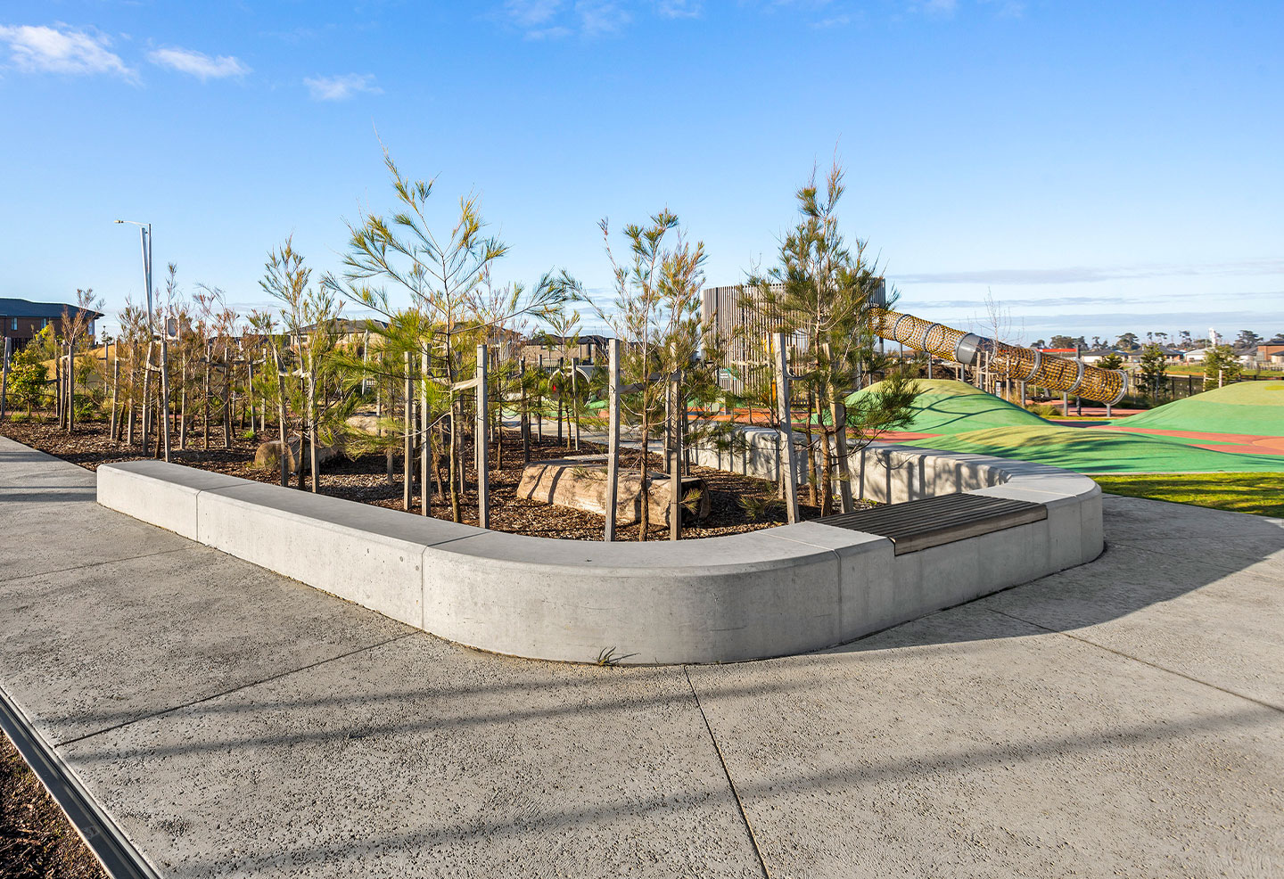 Concrete seating produced by Anston (then SVC Urban) weaves throughout the area, allowing watchful guidance with minimal disruption of the children at play.