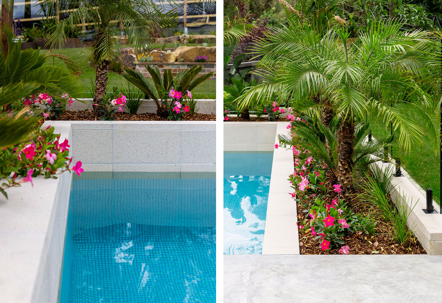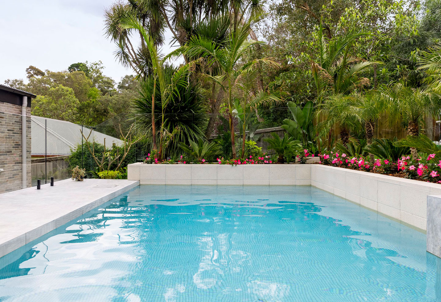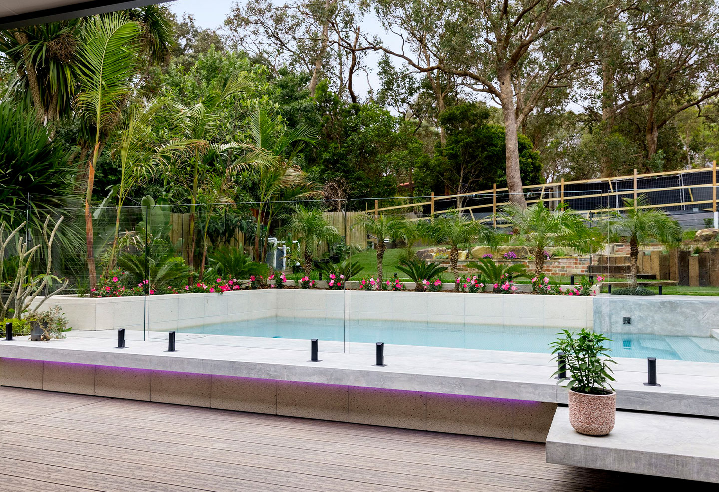 Despite the challenges of the sloping natural site, the final outcome delivered by Saltwater Pools & Landscapes is a stunning result. The clean lines, textured surfaces and contemporary design creates a modern, stylish poolscape that is a show-stopping central point of the home and its rich, layered garden. Demonstrating a winning combination of top quality architectural materials and excellent craftsmanship, this inviting oasis is sure to provide decades of enjoyment to the homeowners.